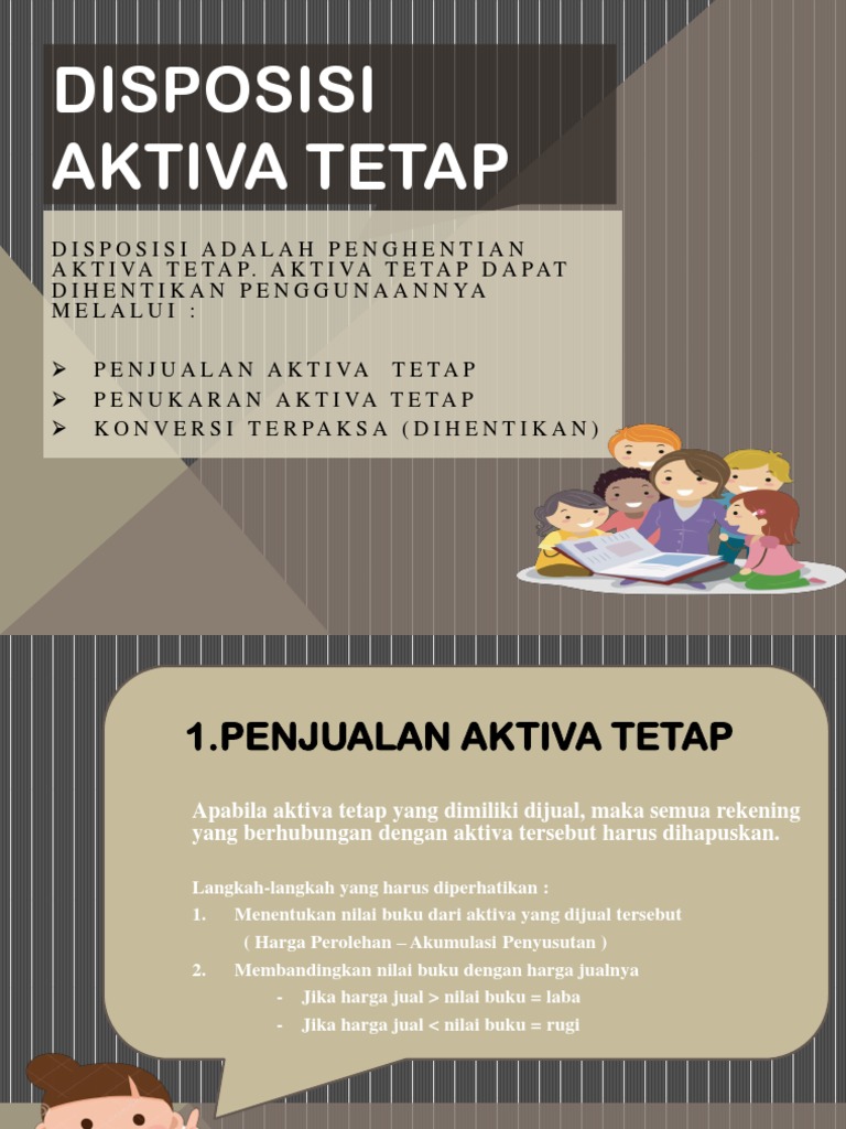Sebagai gambaran jika perusahaan membeli perangkat komputer seharga rp10.000.000. Aktiva tetap berwujud juga dapat mengalami penyusutan nilai. Jumlah angka tahun yang dihasilkan dari umur ekonomis aktiva tetap selama 5 tahun kemudian dijumlah seperti berikut 1 + 2 + 3 + 4 + 5 = 15. Aktiva tetap adalah aktiva berwujud yang diperoleh dalam bentuk siap pakai atau dibangun lebih dahulu, yang digunakan aktiva tetap. Penyusutan aktiva tetap perlu dihitung dan dicatat agar laporan laba rugi perusahaan semakin akurat. Perlakuan akuntansi penjualan aset tetap. Aktiva tetap adalah aktiva berujud yang digunakan dalam operasi perusahaan dan tidak dimaksudkan untuk dijual dalam rangka kegiatan normal perusahaan. Keberadaannya bukan untuk dijual sebagaimana menjadi bagian dari kegiatan perusahaan dan. Kebijakan dan prosedur operasi aktiva tetap. Kriteria aktiva tetap terdiri dari berbagai jenis barang maka dilakukan penggelompokkan lebih lanjut atas. Cara tersebut akan mempengaruhi terhadap harga perolehannya. Menurut sofyan safri, aset tetap adalah aset suatu entitas yang menjadi hak milik perusahaan yang digunakan untuk. Aktiva tetap berwujud adalah aktiva yang memiliki bentuk fisik dan bersifat relatif permanen.
